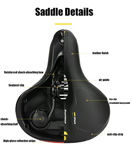 【Sfere a Molla per L'assorbimento Degli Urti】 Il doppio sistema di sospensione e le sfere per l'assorbimento degli urti sul retro della sella hanno un'eccellente resistenza agli urti e assorbimento degli urti, che possono proteggerti dagli urti causati da tratti stradali accidentati.