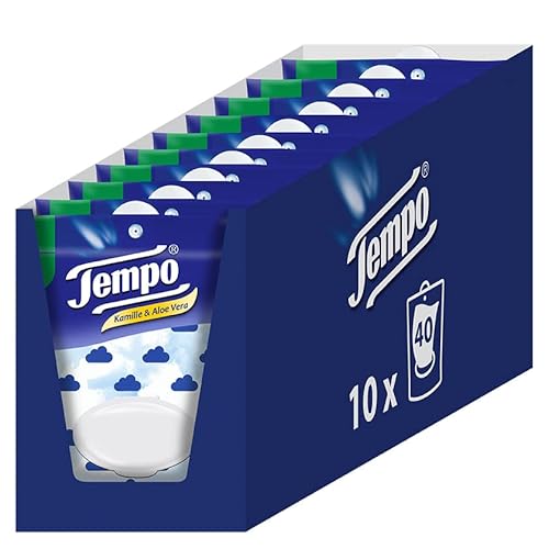 Tempo, Carta igienica umidificata "Soft & Sensitive", Profumo: camomilla e aloe vera, 10 confezioni (10 x 40 pz.)