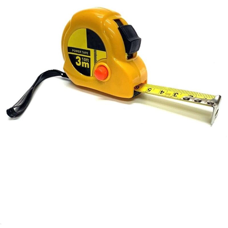 Questo flessometro professionale può misurare fino a 3 metri, con clip per cintura e un comodo cinturino per un trasporto comodo e di facile accesso. Ha un meccanismo autobloccante con bottone di rilascio che permette di estrarre e inserire facilmente il nastro interno. Le dimensioni sono di circa 6,5 x 5,5 x 5,5 cm. Il peso è di circa 85 gr. Il prodotto viene fornito senza istruzioni.