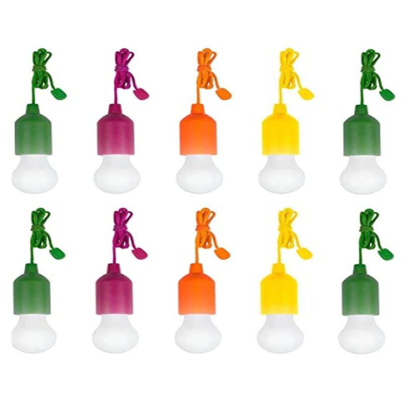 10 lampadine a led colorate che illuminano senza corrente ma semplicemente grazie a batterie mini stilo AAA (non incluse), questa lampadina si può appendere dove si preferisce e basta tirare la cordicella per avere una luce intesa infatti sono state realizzate proprio per illuminare in qualsiasi momento qualsiasi stanza della propria casa, oppure in campeggio, in giardino e tanto altro. Questo prodotto viene fornito senza istruzioni, l'estetica ed il colore possono variare in base alla disponibilità di magazzino, le dimensioni della lampadina sono circa 15,5 x 5,5 cm, la lunghezza della corda è di circa 1 m, il peso è di circa 40 gr, la durata massima a luce continua è di circa 150 ore essendo a led e quindi a bassissimo consumo, inoltre, per lo stesso motivo non si riscalda, quindi non c'è rischio di scottarsi.