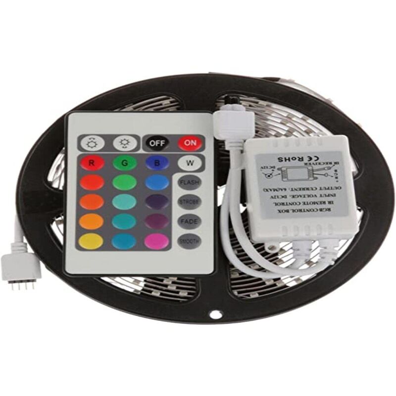 Descrizione Con questa Striscia Led 5 metri rgb è possibile cambiare il colore grazie al telecomando fornito, questo prodotto viene fornito senza istruzioni, l'alimentatore è incluso, la densità è di 60 led per metro, la potenza è di 14.4 w ed è dotata di autoadesivo per una rapida installazione. Questo oggetto ha un grado di impermeabilità pari a IP65 e si può tagliare volendo ogni 5 cm che corrisponde circa alla distanza di 3 led, l'alimentazione è 12V e la temperatura di esercizio può andare da -25° a +60° C. La grandezza della bobina è di circa 15,15 x 15,15 x 1 cm. Il peso è di circa 170 gr.
