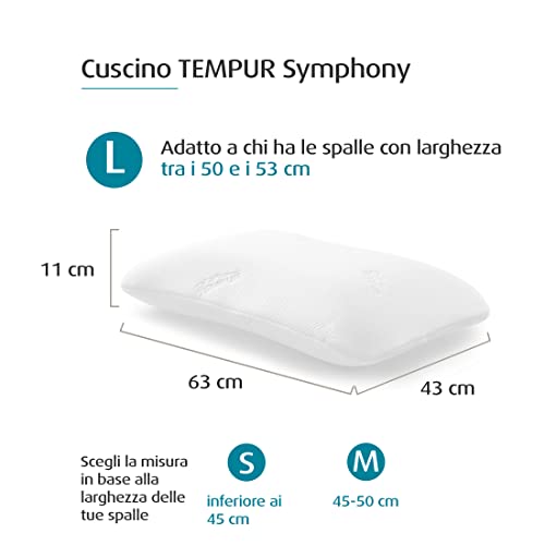 TEMPUR Symphony cuscino in memory foam, cuscino ergonomico di supporto al collo per chi dorme sulla fianco, L (63 x 43 x 14 cm)