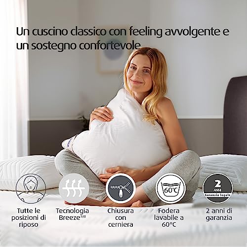 TEMPUR Traditional Breeze cuscino tutto l'anno, cuscino traspirante per tutte le posizioni di sonno, feeling medio-rigido, bianco, 40 x 80 cm