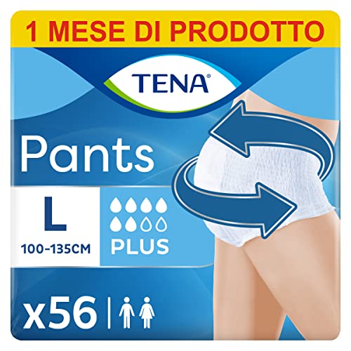 ARTICOLO CONSEGNATO: 1 confezione scorta mensile con 4 pacchi x 14 TENA Pants Plus Large (giro fianchi: da 100 a 135 cm) / 56 mutandine assorbenti per perdite urinarie