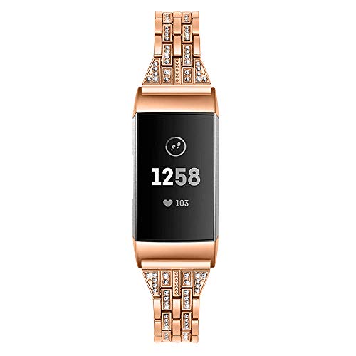 TenCloud, cinturini di ricambio compatibili con Fitbit Charge 4/Charge 4 SE/Charge 3, cinturini in metallo Bling Bling Bling strass braccialetti da donna per Charge 4/Charge 3 (oro rosa)