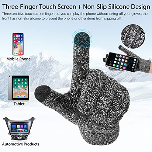 GUANTI TOUCHSCREEN - Guanti invernali con dita touchscreen su pollice, indice e medio, guanti semplici ma raffinati che scaldano le mani mentre ti godi il tempo con il tuo dispositivo touch screen preferito quando fa freddo. La funzione antiscivolo potrebbe mantenere il telefono non scivola di mano, inoltre può essere utilizzato per guidare auto nelle giornate fredde.