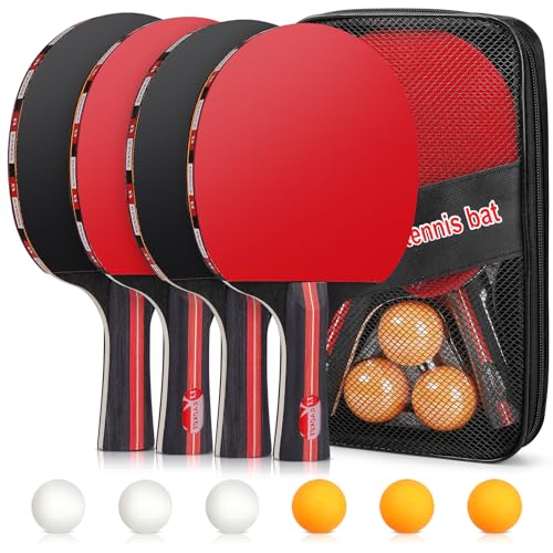 Tencoz Racchette da Ping Pong Professionale, Set da Ping Pong Portatile, 4 Racchette Ping Pong in Gomma a Doppia Faccia con Borsa, 6 Palline Ping Pong per Indoor Outdoor Tavolo da Ping Pong Gioco