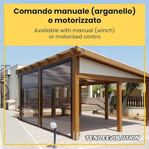 Tenda Antipioggia Antivento Esterno in PVC Cristal con Guide Laterali, Personalizzabile, Tenda Trasparente Esterno per Verande in PVC Impermeabile e Cassonetto Su Misura (L. da 141 a 190 X H. 250)
