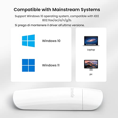 Tenda U18 AX1800 WiFi 6, Adattatore WiFi USB 3.0, Dual Band MU-MIMO 1800Mbps per PC/Desktop/Laptop, Supporta Esclusivamente i Sistemi Operativi Windows 11 & 10