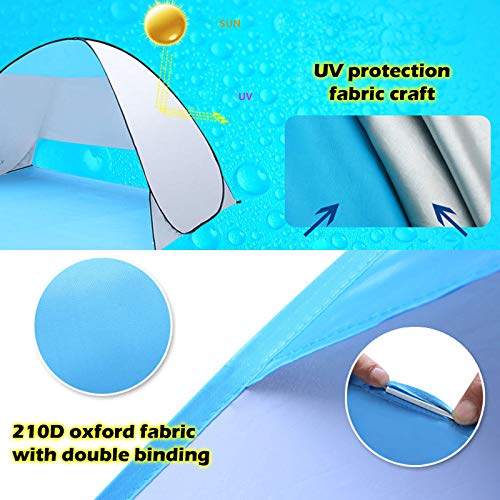 Alta Qualità: La tenda è realizzata in tessuto argentato 190T, robusta asta in fibra di vetro, cuscino rivestito in tessuto Oxford molto resistente e resistente all'usura. Grado anti-UV 50+, può proteggere te e la tua famiglia dai dannosi raggi del sole. Amerai il tendalino
