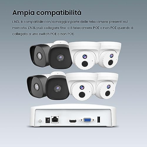 Ingresso 8MP/4K UHD e uscita 1080P HD - Il videoregistratore di rete supporta l'accesso a telecamere IP da 8MP/6MP/5MP/4MP/3MP/1080P/720P/D1 UHD, l'anteprima video, la memorizzazione e la riproduzione simultanee. Supporta inoltre l'uscita VGA/HDMI simultanea con risoluzione fino a 1920 × 1080