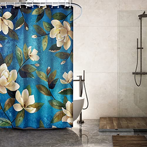 Tenda da doccia ad angolo, con fiori e piante, impermeabile, 120 x 180 cm