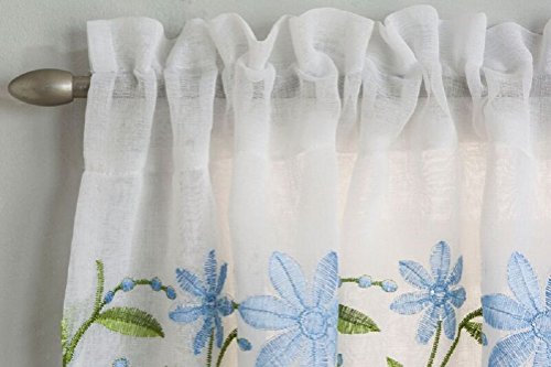 Set tenda per finestra con margherite blu del Tyrone ricamate, con fessura per asta, Poliestere, Blue, 36" Drop