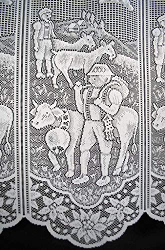 Tenda della Finestra Mucche u. Pastori di Montagna Altezza 60 cm | può Scegliere la Larghezza in segmenti da 19 cm, Come Vuole | Colore: Bianco | Tendine Cucina