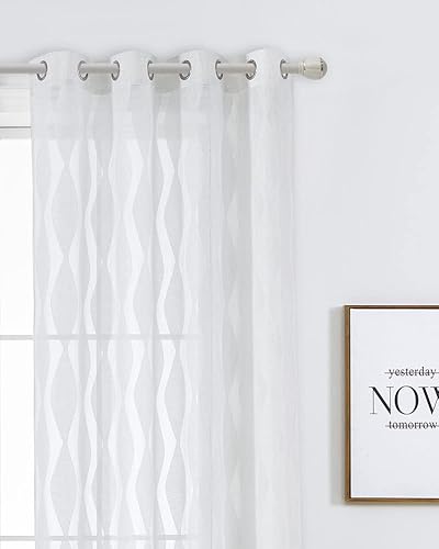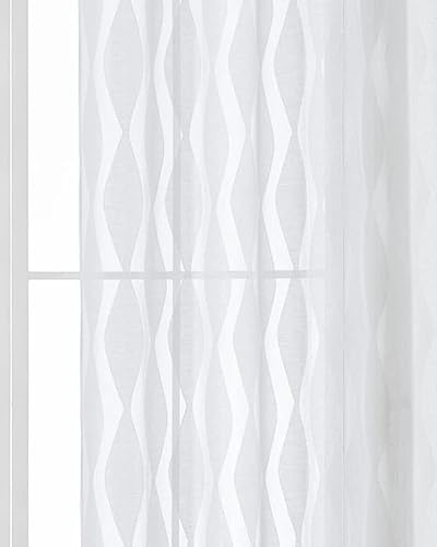Tenda per Finestra con Occhielli Tenda Interno Jacquard Trasparente per Soggiorno e Camera da Letto (140x230 cm, BIANCO)
