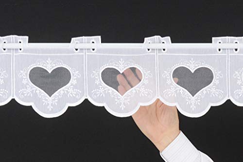 Tenda della Finestra Ricamato con Il Cuore Altezza 18 cm | può Scegliere la Larghezza in segmenti da 15,5 cm, Come Vuole | Colore: Bianco | Tendine Cucina