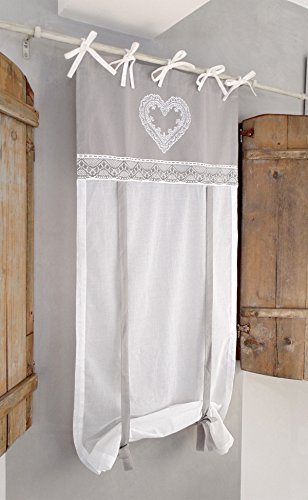 Tenda Finestra Stile Shabby Chic, Tenda a Pacchetto per Finestra Stile Provenzale (Bianco / Grigio / Con Cuore, 60X240)