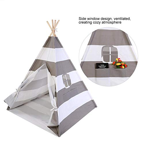 Tenda indiana per bambini Teepee, tenda indiana Wigwam per bambini Teepee portatile per giochi per esterni e interni, 120 x 120 x 145 cm (grigio + bianco)