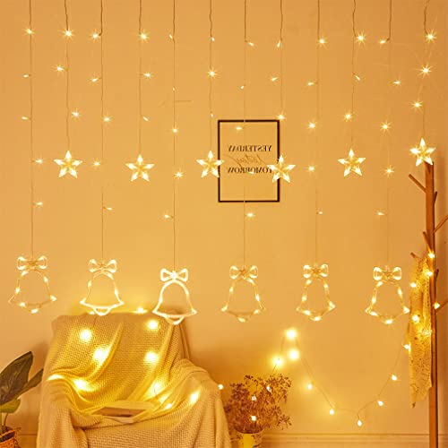 【Specificazione】 Ci sono 6 grandi campane, 6 piccole stelle, oltre a 138 piccole perle di lampada, con una lunghezza di 2.5 m, che è un'ottima scelta per la decorazione di Natale.