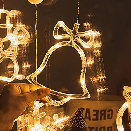 Tenda Luce, HOTSO Luci a Stringa Hanging 138 LED Impermeabile Lucine Decorative con Campane 8 Modalità per Natalizie Finestra Matrimonio Festa Giardino, Bianco Caldo