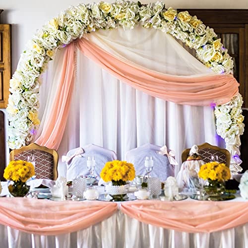 Tessuto di alta qualità: questo tessuto chiffon ad arco aggiornato è realizzato in tulle elastico crittografato con buona resistenza alle pieghe, liscio come la seta, senza pieghe, morbido al tatto e può essere riutilizzato. Per rendere le tende sfondo tulle soffici e pieno effetto, basta spruzzare un po 'd'acqua e regolare delicatamente a mano. Non deformato.