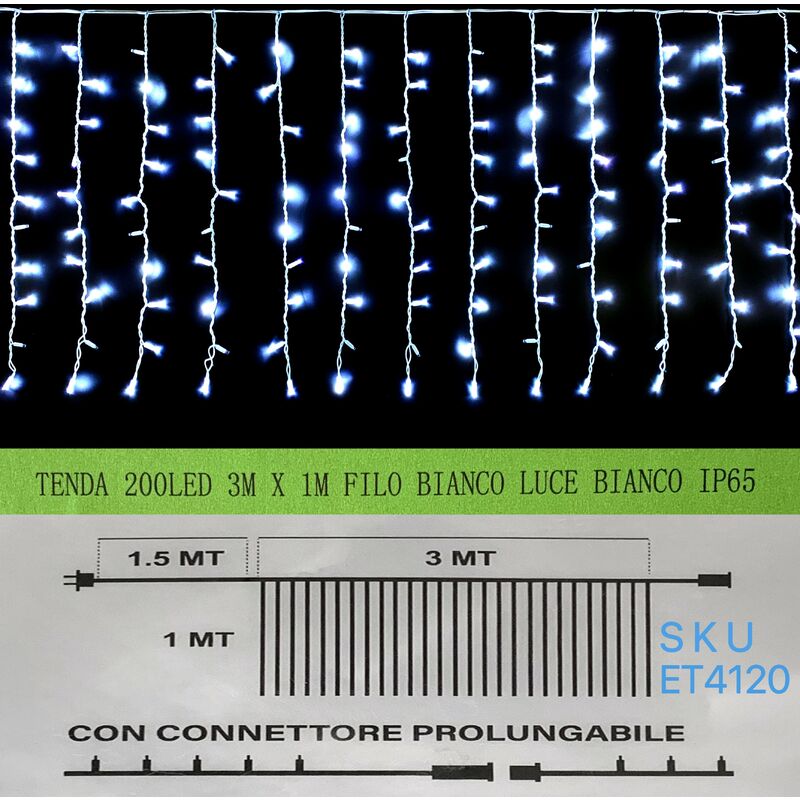 Ideale per decorazioni Natalizie o per feste private, con la possibilità di decorare alberi, balconi, siepi, giardini, e tutto ciò a cui vorrete dare un'atmosfera festosa. Grazie alla bassa tensione nei cavi puoi impiegare questa decorazione in casa in tutta sicurezza e tranquillità. Cratteristiche: Uso:Interno Esterno Alimentazione: 220-240v Il natale sta arrivando, rendi il tuo esterno più luminoso e speciale e lasciati coinvolgere da questa atmosfera magica che renderà il tuo natale ancora piu bello e colorato. tenda 200 led LUNGA 3m PENDENTI DA 1metro filo bianco luce bianco ip65 da esterno