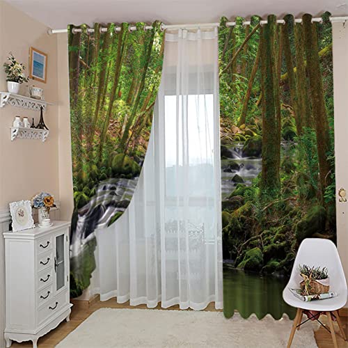 Tenda Oscurante Camera Da Letto Bambini Tende Finestre Soggiorno Moderne 2 Pezzi Stampa 3D Fiume Del Torrente Dei Boschi Motivo Tende Oscuranti Termiche Isolanti Con Occhielli 200X160Cm
