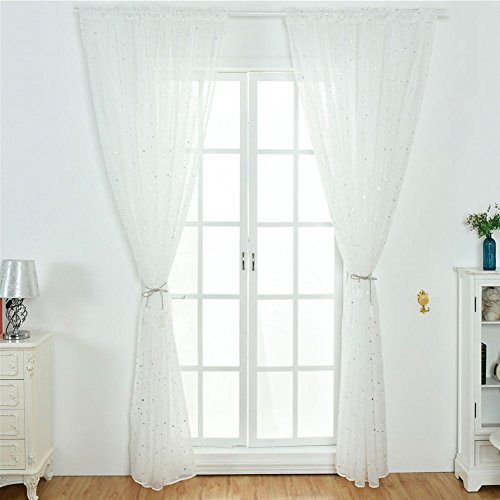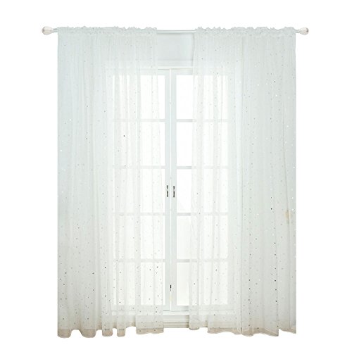Tenda a pannello in tulle, con stelle, per camera da letto dei bambini, soggiorno, bianco, 100x200cm-hook