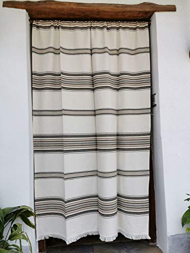 Tenda parasole rustica, (160 x 215 cm), Ecru Marrone Colore 103 Realizzata in Spagna, Fibra naturale di cotone - Tenda per porta esterna zanzariera e parasole