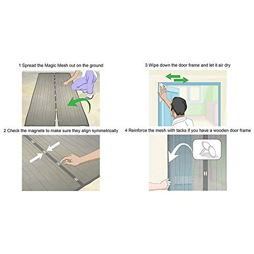Tenda per porte, a chiusura magnetica, con rete anti-insetti contro mosche e zanzare, colore bianco