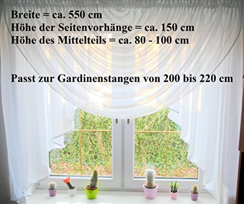 Tenda pronta all'uso in voile, Top Design SET, bella tenda HG-1, moderna, bianco, Fensterbreite 200 - 220 cm