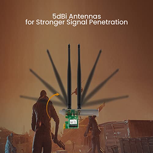 Scheda WLAN - L'E12 è una scheda di rete PCIe 11AC che aggiorna il computer con velocità Wi-Fi fino a 1167 Mbps. Il WiFi dual-band offre 867 Mbps tramite la banda a 5 GHz e 300 Mbps tramite la banda a 2,4 GHz. L'E12 è l'aggiornamento del PC perfetto per i giochi online più impegnativi e lo streaming video 4K.