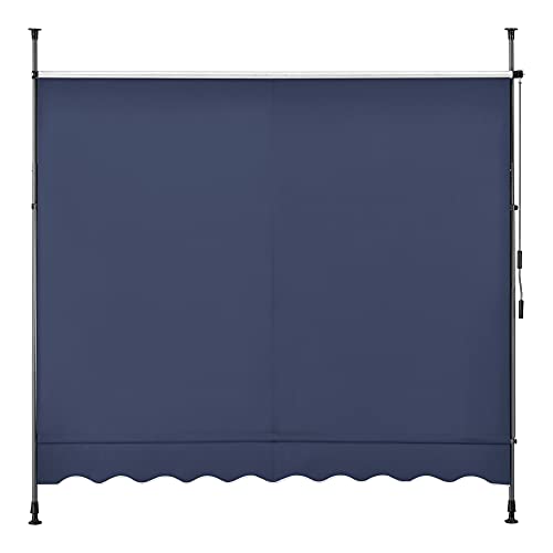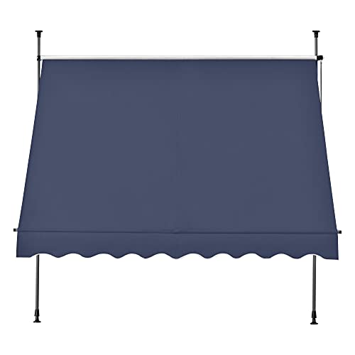 Pro.tec Tenda da Sole a Muro con Pali di Supporto Telescopici Regolabili in Altezza tra 2-3 m Senza Fori Tettuccio Parasole a Manovella e Bracci - 150 x 120 cm (LxP) - Blu Scuro