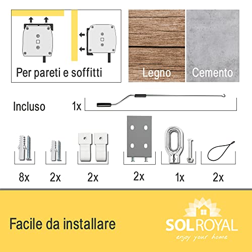 - La soluzione contro gli sguardi indesiderati e la protezione dal vento e dal sole. La nostra tenda da sole per facciate Sol Royal MS5 con cassonetto in alluminio e manovella rimovibile. Riceverete la tenda da sole compreso il materiale di montaggio necessario.