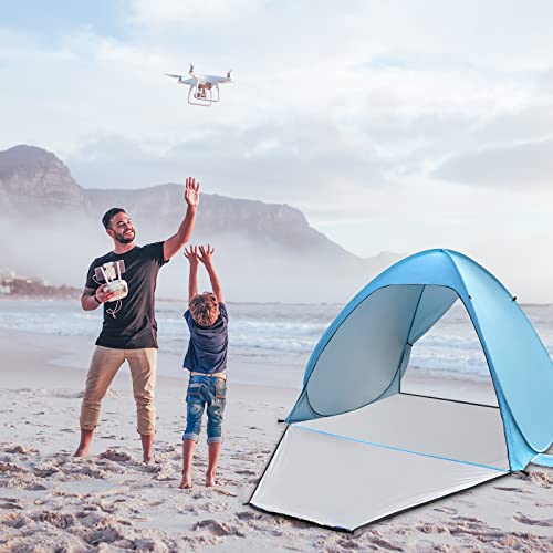 【Protezione UV 50+】 Il tessuto del riparo da spiaggia pop-up è realizzato in tessuto rivestito d'argento 190T, che offre una protezione UV del riparo da spiaggia UP 50+ per proteggere la pelle ed evitare scottature. Questo tipo di tessuto ha anche le caratteristiche di isolamento termico e traspirabilità, che possono mantenere meglio la tenda fresca e confortevole.
