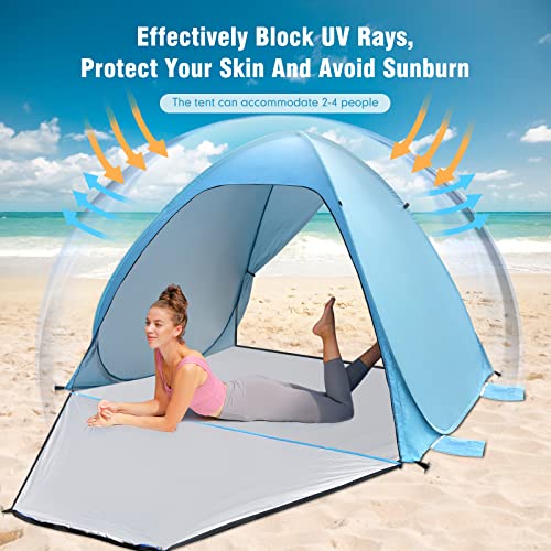 Tenda da Spiaggia Pop up, 2-4 Persone Tenda da Spiaggia Protezione UV 50+ Tenda da Campeggio Automatica da Spiaggia Porta Anteriore e Posteriore con Cerniera Confezione Piccola per Spiaggia, Giardino