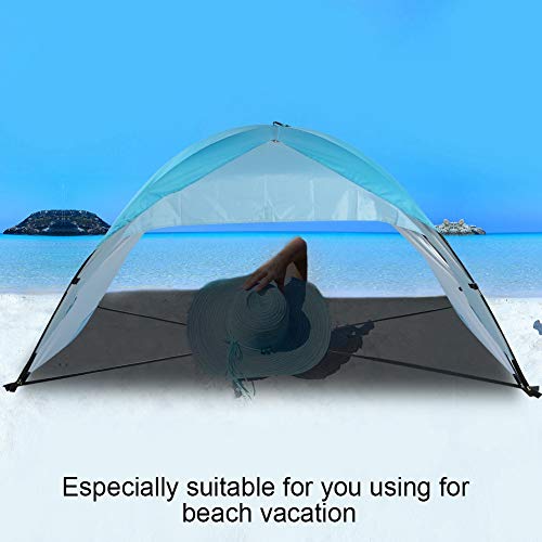 Tenda da spiaggia, poliestere argento rivestimento doppio pieghevole portatile esterno parasole tenda da sole tenda sandbeach pratica per l'utilizzo di vacanza al mare portatile baldacchino riparo del
