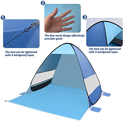 Tenda da Spiaggia, Tenda da Spiaggia Pop-up con Protezione UV 50+ per 1-2 Persone, Tenda da Campeggio Portatile Ultraleggera per Escursionismo, Picnic, Pesca, Giardino e Attività All'aperto (Blu)