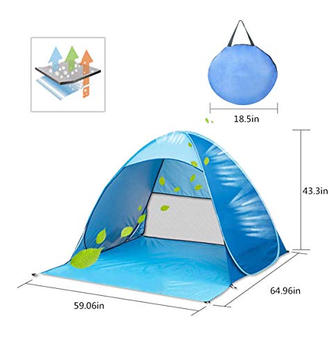 Tenda da Spiaggia, Pop Up Tenda Portatile Tenda Istantanea per 2-3 Persone, Protezione Solare UPF 50+, facile da installare, Include Borsa Portabile