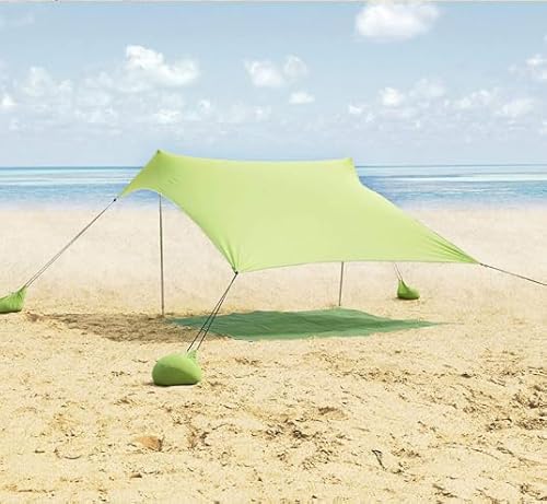 Tenda da Spiaggia, Portatile Protezione Tenda Da Sole con 4 Sacchi di Sabbia e 2 pali in Alluminio, 2.1*1.6*1.5m UPF 50+ Tenda Parasole Per La Spiaggia, Il Campeggio Picnic, La Pesca Verde