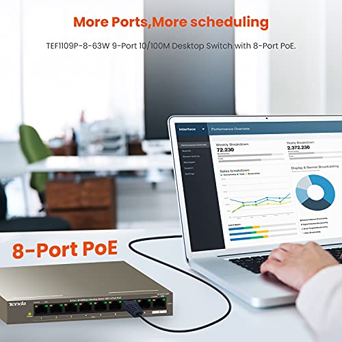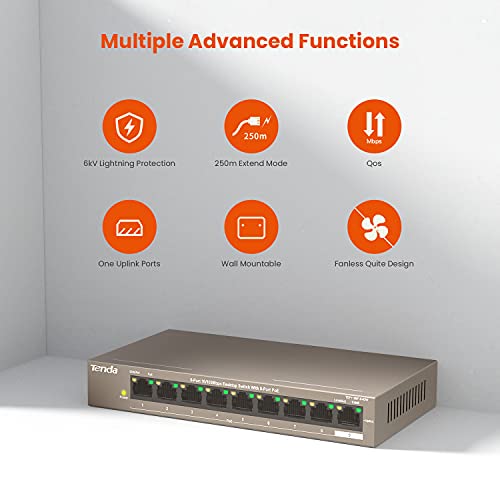 Tenda Tef1109P Commutatore di Rete Gestita Fast Ethernet (10/100) Supporto Power Over Ethernet (Poe) Grigio Switch di Rete