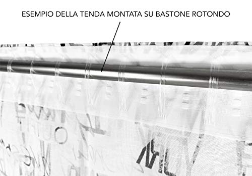 STILE 2 in 1: grazie alla fettuccia doppio uso la puoi adattare a QUALSIASI TIPO DI BASTONE ROTONDO oppure a TUTTI I TIPI DI BINARIO, infatti il nastro sul bordo superiore ti permette di creare facilmente delle pieghe e posizionarla usando i ganci per tenda oppure la fettuccia è anche dotata di passanti nascosti che ti permettono infilare la tenda direttamente su un bastone per tenda.