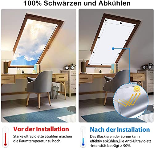 【Alta qualità】: il tessuto è opaco al 100%, spesso, solido e resistente. La parte posteriore ha il tessuto riflettente. Possono isolare il calore. Le tende per lucernari bloccano i raggi UV e solari e prevengono l'accumulo di calore.