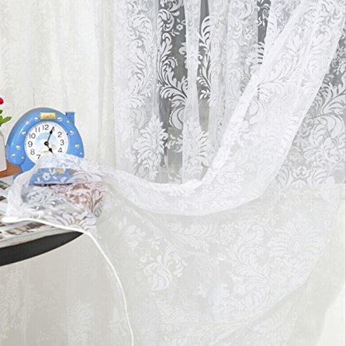 Tenda Tulle Viole Motivo Floreale Floccato Decorazioni Interni Finestra Letto, Misura 200x100cm - Bianco