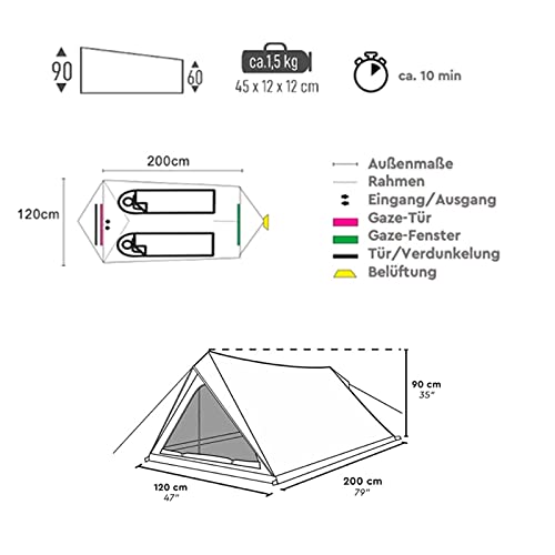 La tenda biwak leggera di BAYU si adatta a qualsiasi zaino ed è molto adatta per le escursioni in estate. Il montaggio è veloce e richiede poco spazio, quindi la tenda è molto individuale e utilizzabile in molti luoghi. Il piccolo ingombro lo rende ideale per ciclismo, canoa, motociclisti e zaini.