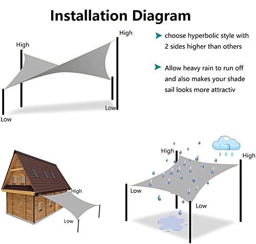 【Facile da installare】la misurazione viene effettuata dall'anello a D all'anello a D, lasciare uno spazio di 30-45 cm tra il punto di fissaggio e la vela ombreggiante per adattarsi all'hardware o alla corda.