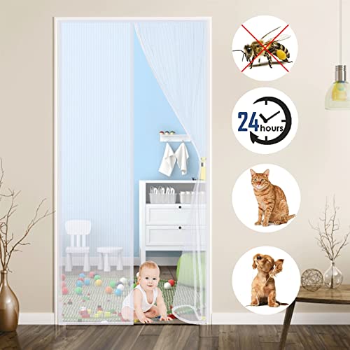 Tenda Zanzariera Porta Magnetica, 80x240cm Zanzariera Porta Finestra Magnetica Anti-Zanzare,Da Porta Perfetta Per Animali Bianco