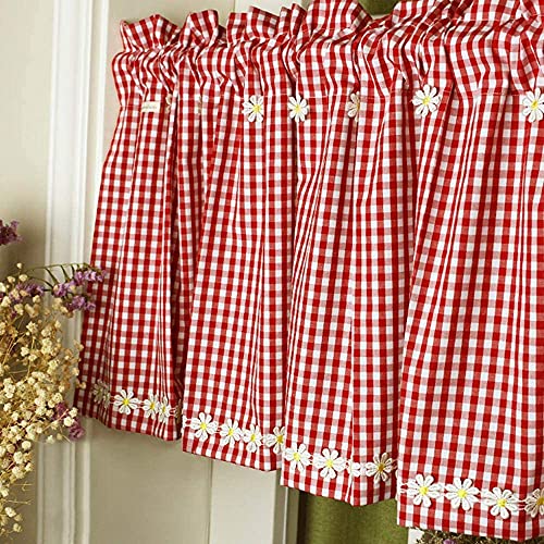 Tende in cotone a quadretti rosso/verde, Mezze tende a quadri in stile country country americano, Mantovana a finestra corta a quadretti con pizzo, Per l'arredamento della casa (200*60CM,B)