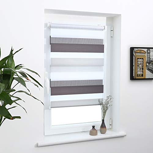 Tende a rullo senza fori Tenda a rullo avvolgibile - 45 x 150 cm bianco grigio antracite - due modi per l'installazione