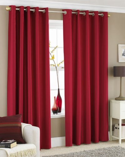 Tende in satin foderate con occhielli, 168 x 229 cm, colore rosso